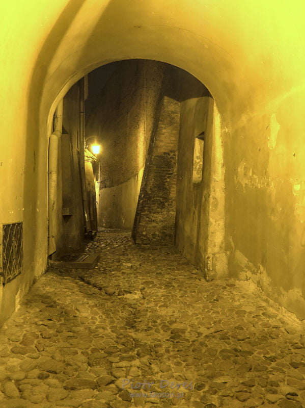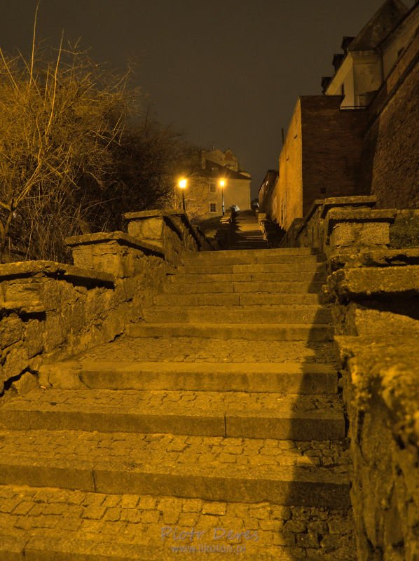 Z tego miejsce jest bardzo dobry widok na zamek, do którego zmierzaliśmy, więc po wykonaniu kilku zdjęć przeszliśmy na pobliski Zaułek Panasa, gdzie schodami zeszliśmy na Podwale. Co ciekawe te schody nazywane są Schodami Poezji, a to dlatego, że na stopniach można przeczytać wiersz „Przesłanie Pana Cogito” Zbigniewa Herberta. Sama inicjatywa Schody Poezji powstała w ramach Miasta Poezji i polega na dekorowaniu wybranych schodów wierszami.