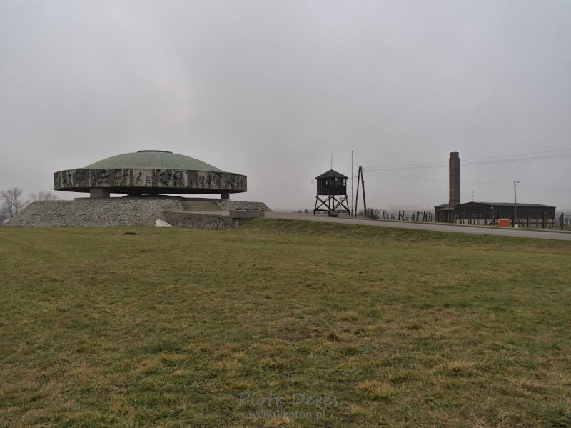 Spod pomnika wróciliśmy do samochodu, aby podjechać na kolejny parking. Co prawda wolałbym cały obiekt obejść, ale mieliśmy już zarezerwowaną wizytę w kolejnym miejscu, więc woleliśmy się nie spóźnić. Tym razem podjechaliśmy na parking przy Mauzoleum, który jest drugim pomnikiem Walki i Męczeństwa. Pomnik ten powstał w 1969 r. według projektu Wiktora Tołkina i inż. anusza Dembka. W tym obiekcie, który kształtem przypomina prasłowiańską urnę, złożono prochy więźniów obozu. Na czele kopuły znajduje się napis „Los nasz dla was przestrogą”. Tekst ten pochodzi wiersza Franciszka Fenikowskiego pod tytułem „Requiem”.