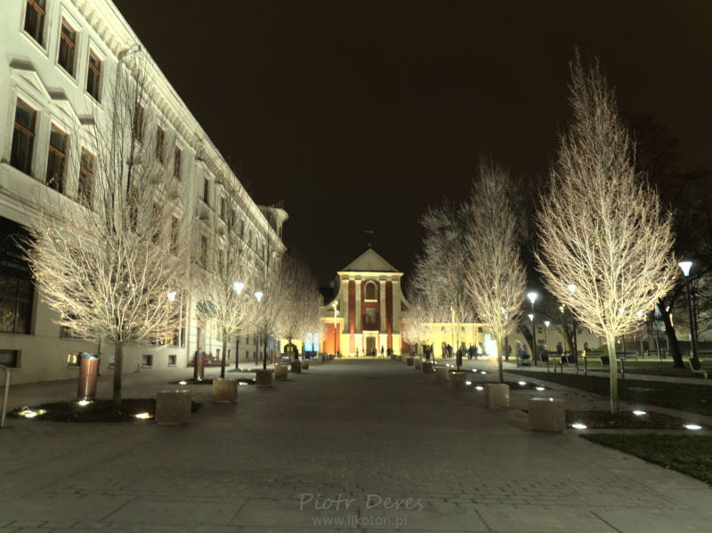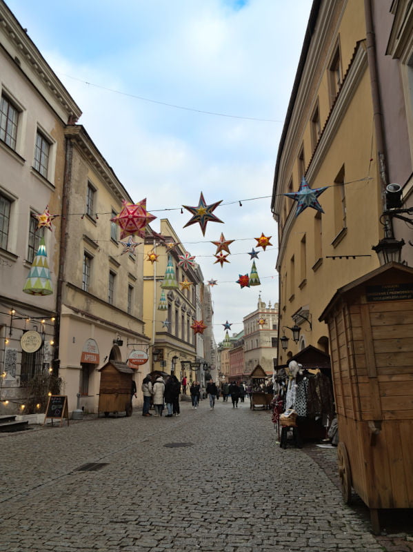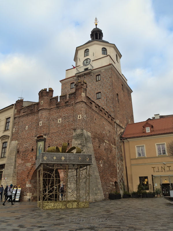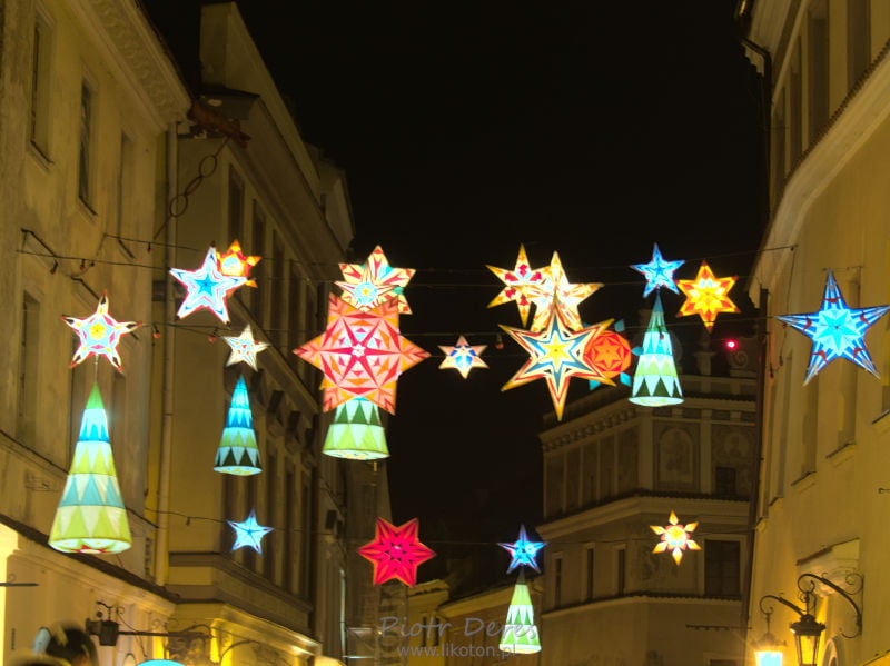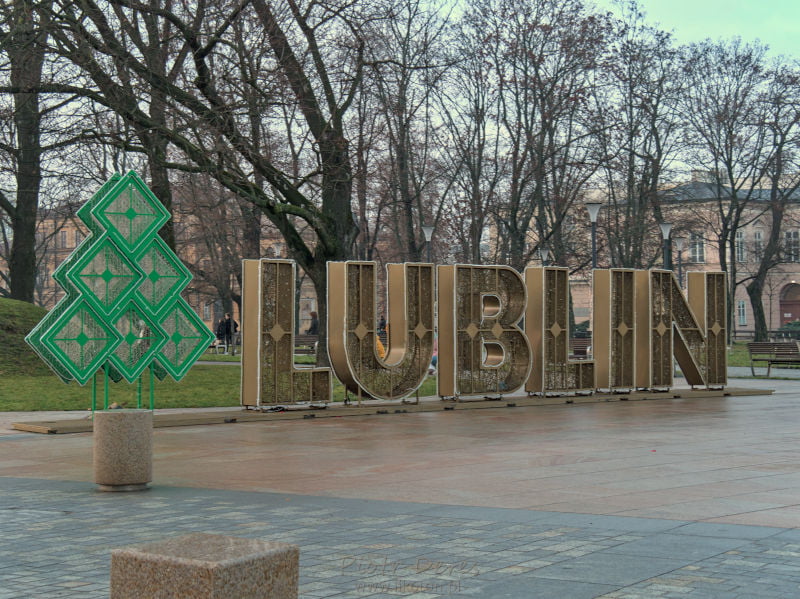 Pomiędzy pięknymi kamienicami powoli przeszliśmy na Plac Litewski, mijając szopkę bożonarodzeniową, ustawioną na skwerze im. Tadeusza Witkowskiego. Szopka była bardzo oblegana, więc nie za bardzo mogliśmy się jej przyjrzeć. Kolejnym takim obiektem był neon z tekstem LUBLIN, z którym wiele osób chciało zrobić sobie zdjęcie. Tutaj podobnie jak przy innych atrakcjach tego typu jest jeden wielki bałagan i ludzie robią sobie zdjęcia z tym napisem, który zasłonięty jest przez inne osoby. Niby pamiątka, ale tylko oni sami wiedzą, co było w tle.