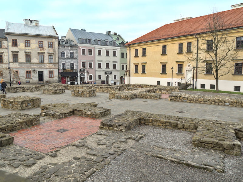 Rozgrzani wyszliśmy kontynuować nasze zwiedzanie Lublina. Zaraz po wyjściu z pizzerii weszliśmy na plac Po Farze, gdzie znajdują się ruiny kościoła św. Michała Archanioła oraz jego model, który pokazuje, jak kościół wyglądał.
