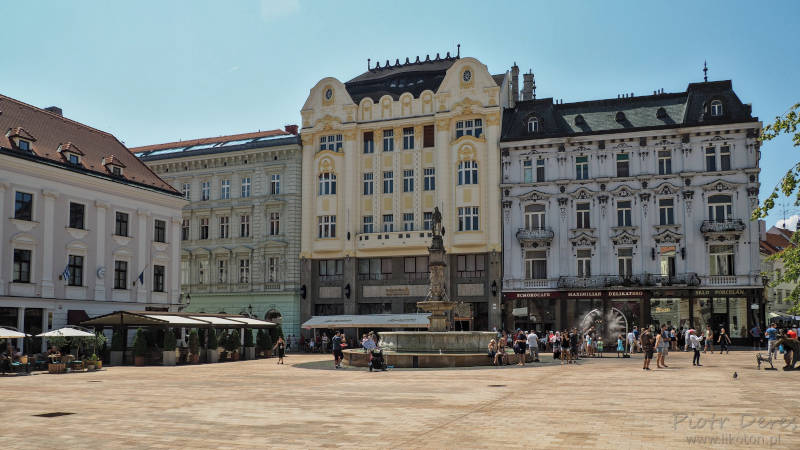 Na Starym Mieście mniejsze wrażenie niż kamienice zrobił na mnie rynek, tzn. Hlavné námestie. Co prawda otoczony był pięknymi kamienicami, ale był mały i brakowało mi ratusza pośrodku. Bardziej mi się podobał Plac Hviezdoslava, który trochę przypomina krakowskie Plany, ale jest zdecydowanie lepiej zadbany i otoczony kamienicami przykuwającymi oko.