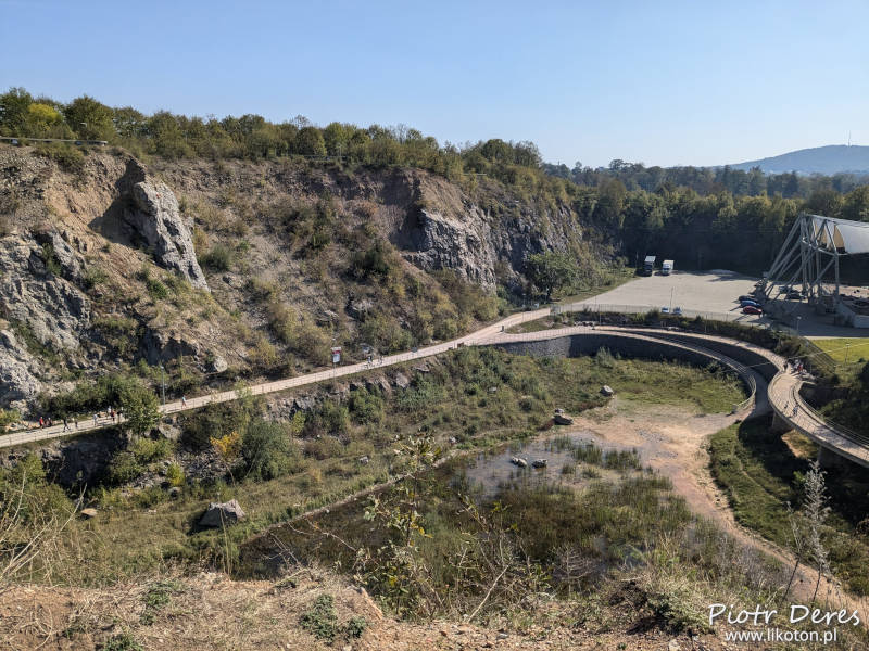 Kadzielnia okazała się świetnym miejscem, które wcześniej ominęliśmy, będąc w Kielcach. Niesłusznie, ponieważ można tu fajnie spędzić czas nie tylko na spacerach, ale wylegiwaniu się na leżakach, zjeździe tyrolką, czy pływaniu kajakami po jeziorze. Dla chętnych możliwe również przeskakiwanie z kamienia na kamień, aby poczuć się, jak w wyższych partiach gór.