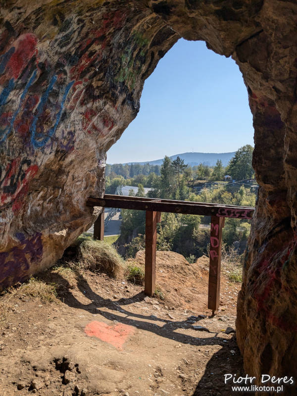 Trafiłem również na niewielką jaskinię, która kończyła się zabezpieczonym oknem z widokiem na Kadzielnię. Świetne miejsce, które w pełni zaspokoiło moją chęć chodzenia po górach. Miałem gdzie poskakać, jak kózka. Polecam się tu przejść, oczywiście na własną odpowiedzialność.