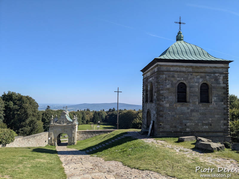 Na szczycie najpierw w kramie żona kupiła Jaśkowi pluszowego jeża i krówki, a później chwilę pochodziliśmy przy klasztorze, robiąc sobie pamiątkowe zdjęcia. Dłużej zeszło się nam wracając, ponieważ Jasiek zobaczył schody przy muzeum i musieliśmy wielokrotnie po nich wejść i zejść. Ciężko go było oderwać od tej zabawy.