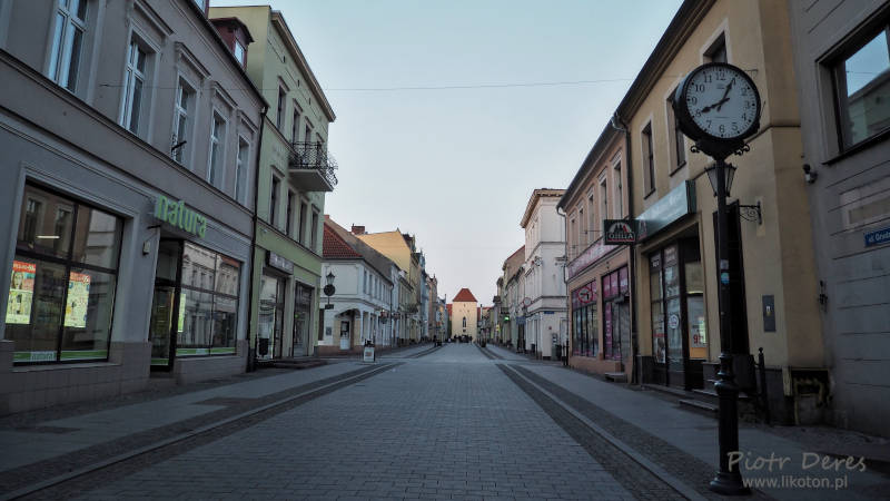 Przy wieży ciśnień zawróciliśmy i idąc wzdłuż ulic Ignacego Paderewskiego, doszliśmy do ulicy gen. Władysława Sikorskiego. Następnie skierowaliśmy się na chełmżyński Rynek, gdzie usiedliśmy na ławeczce i chłonęliśmy promienie słoneczne. Tu, dzięki pobliskim kamienicom nie było czuć wiatru i chłodu.