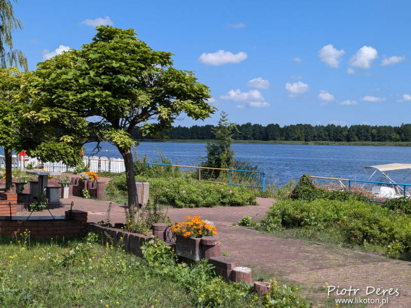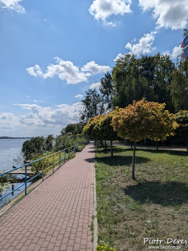 Przeszliśmy się po pobliskim parku. Wszedłem na Grodzisko Barbarka, skąd zza drzew widać Narew. Niestety nie da się tu wjechać z wózkiem, więc żona poczekała na dole. Stąd ulicą Rybaki doszliśmy do Bulwaru Nadnarwiańskiego, gdzie spokojnie mogliśmy sobie pospacerować i popatrzeć na rzekę.