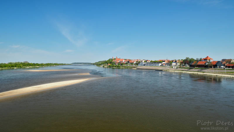 Początek spaceru po Grudziądzu zaczęliśmy tak, jak poprzedniego dnia. Doszliśmy do ulicy Gdyńskiej, ale z niej nie schodziliśmy nad Wisłę. Przeszliśmy mostem na drugą stronę Wisły, gdzie po drodze mieliśmy piękny widok na rzekę i zabytkowe budynki z czerwonymi dachami, między którymi przechodziliśmy poprzedniego dnia.